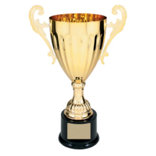This is our most poplular metal cup. Assembled with a metal cup, metal handles, plastic stem and plastic weighted base. This metal cup trophy is great for all needs. Your custom logo can be added at no extra charge.
